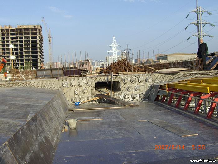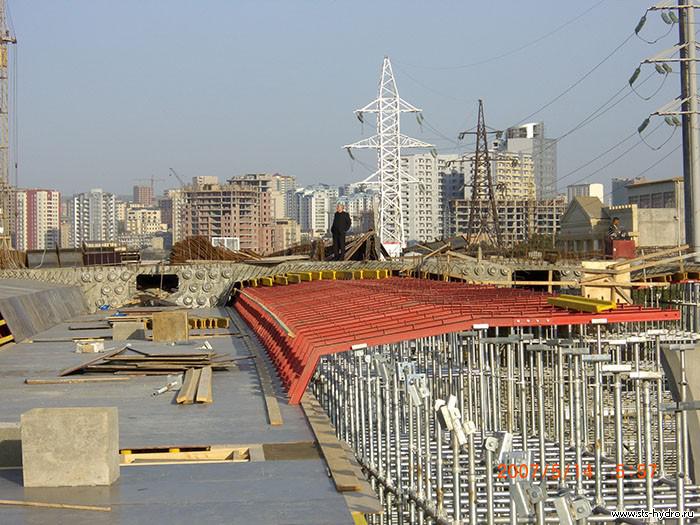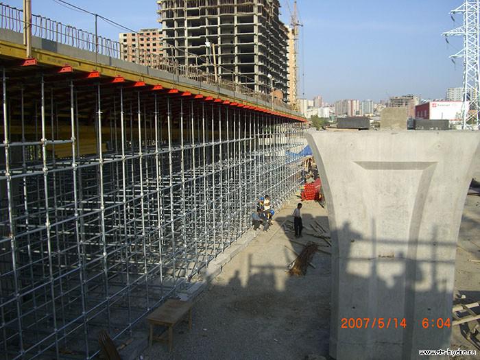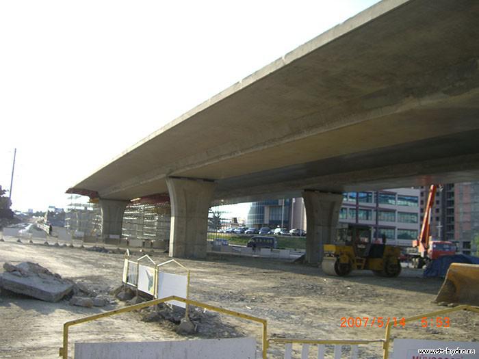 The tendons of section 3 were tensioned from both ends, while the remaining tendons were tensioned from one end only, followed by grouting of the ducts. This creates an upward camber of the superstructure from pier 1 to pier 11 and ensures durable bonding of the reinforcement to the concrete.