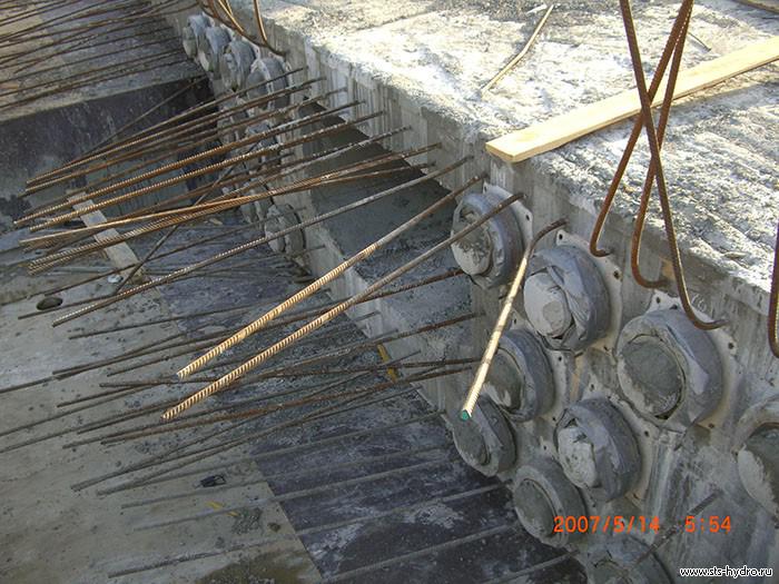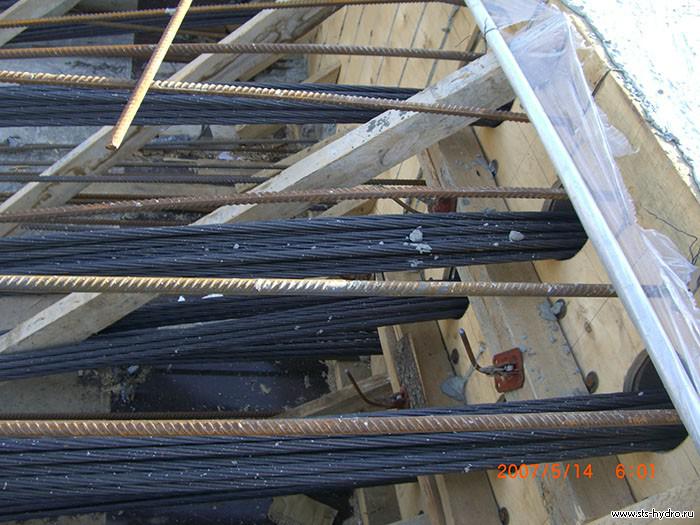 The tendons of sections L3 and R3 were anchored in the SK-19 anchor heads. Sections L2 (R2) and L4 (R4) were joined and fixed at the SK-19 joints. Sections L1 (R1) and L5 (R5) were joined at the SK-19 joints and secured with AKS-19 anchors.